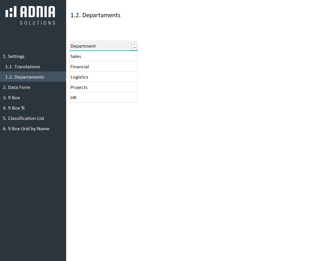 - Spreadsheets ready for printing without Adnia logo