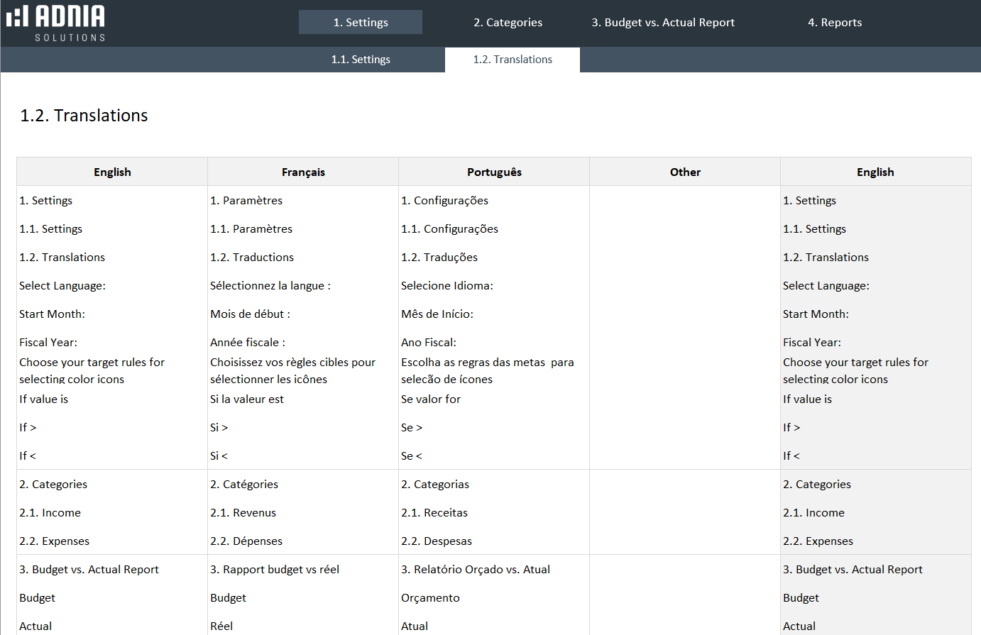 - Multilingual template: Select one of the available languages (English, French, or Portuguese) or manually translate to the language of your choice