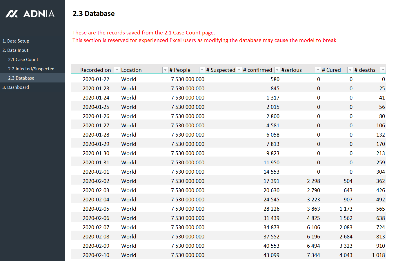 - Spreadsheets ready for printing without Adnia logo