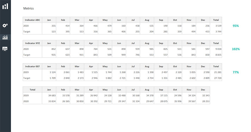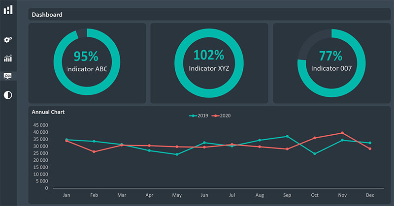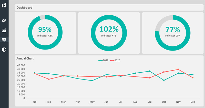 - Dashboard design layouts to display annual performance indicators
