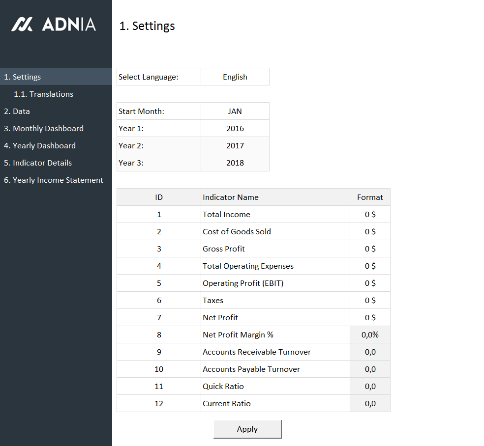 - Multilingual template: Select one of the available languages (English, French, or Portuguese) or manually translate to the language of your choice