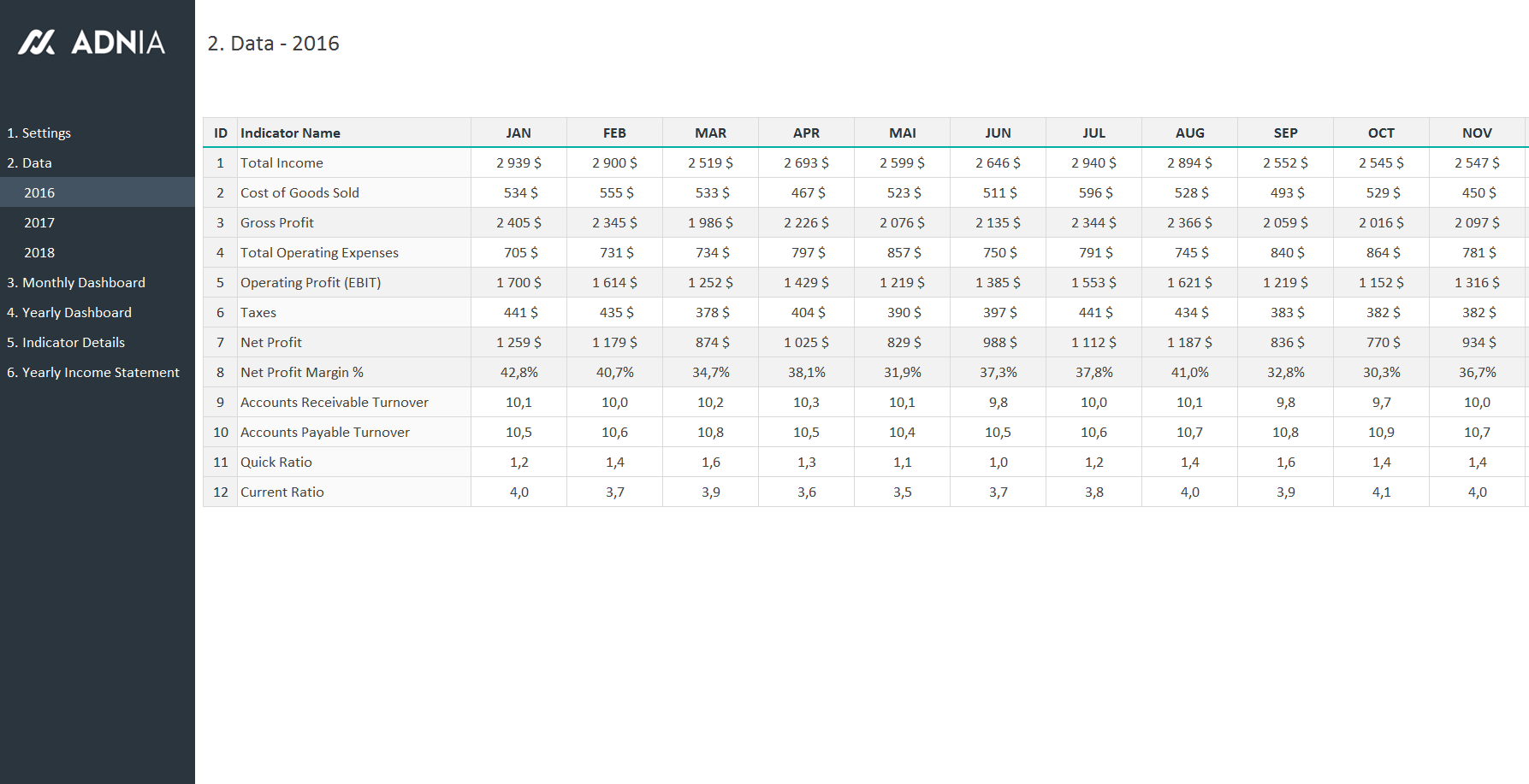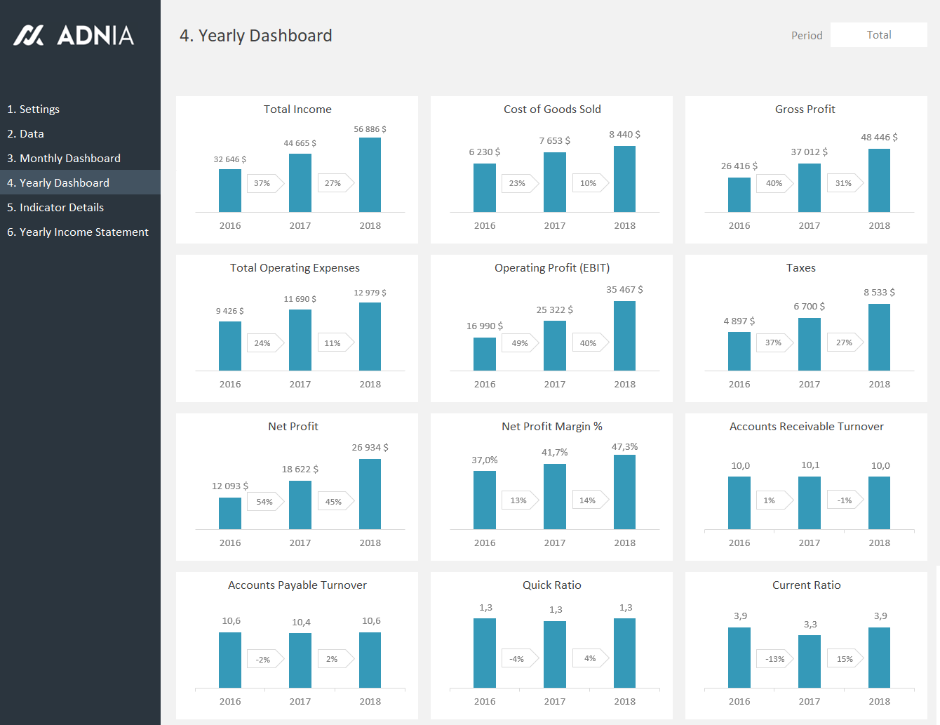 - Compare up to 3 years of financial data and 12 key indicators, all in one place