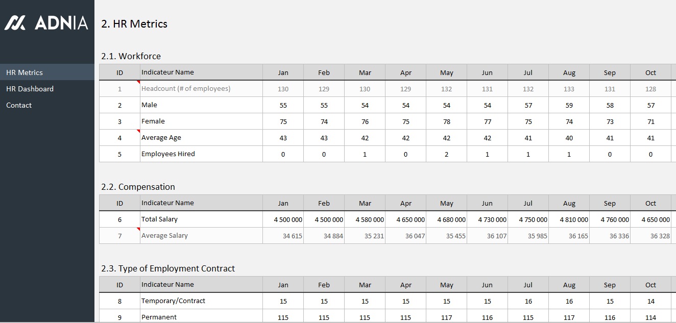The HR Dashboard Template is an Excel spreadsheet that is perfect for tracking the most common human resources performance indicators. This dashboard template provides you and your team with a visual representation of your company’s workforce and allows you to quickly analyze your business situation.