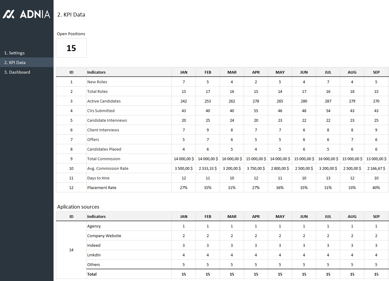 This multilingual template includes three spreadsheets that are available for immediate download after payment. There is one sample spreadsheet that shows how the template works and two spreadsheets in different colors that are ready to receive data.