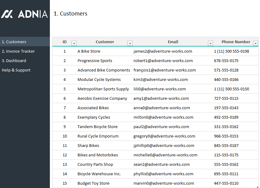Take the guesswork out of paid and unpaid invoices. The Adnia Invoice Tracker Template helps simplify invoice management, leaving you more time to focus on other tasks. This Excel spreadsheet template has an easy-to-interpret dashboard that lets you see all your invoices in once place, stay ahead of unpaid invoices and send timely reminders. Simply enter the amount paid by the customer and let the template calculate the rest.