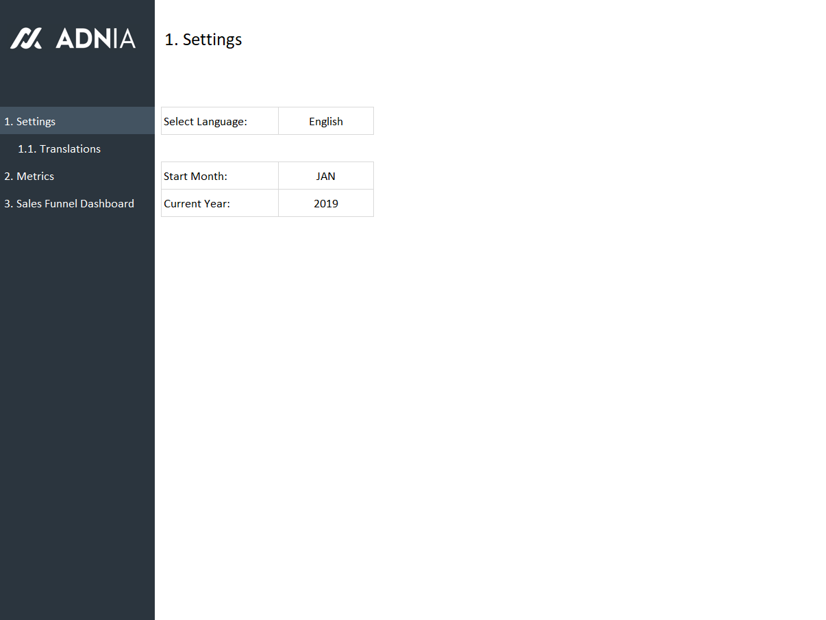 - Spreadsheets ready for printing without Adnia logo