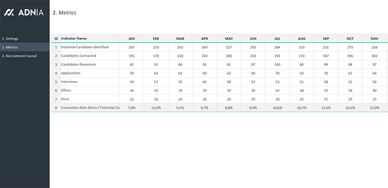 - Instantly visualize conversion rate (Hires/Potential Candidates Identified)