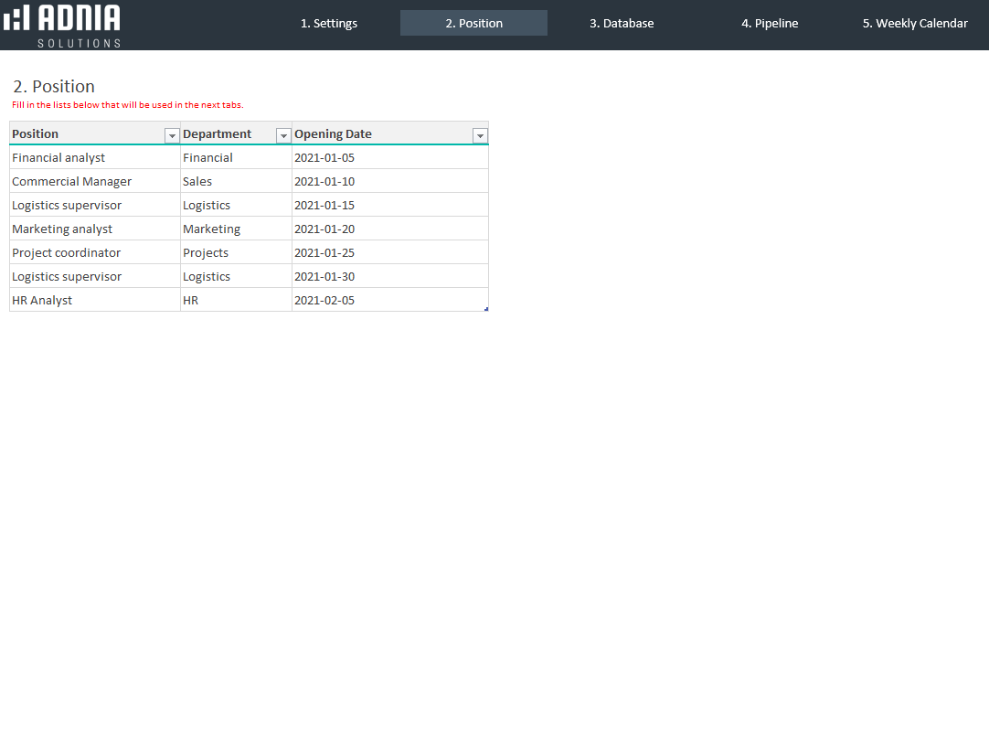 - Spreadsheets ready for printing without Adnia Solutions logo