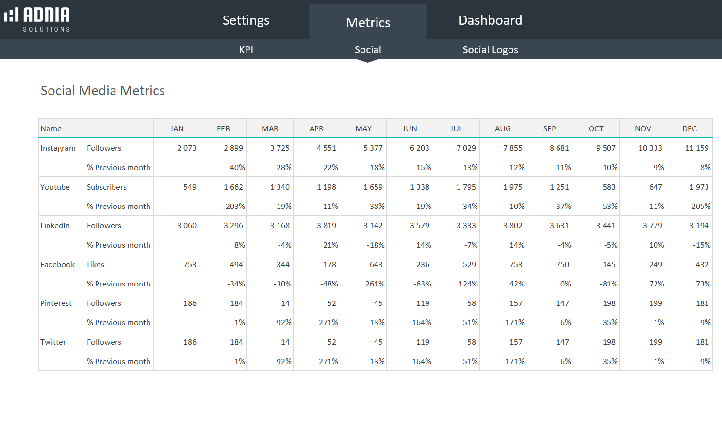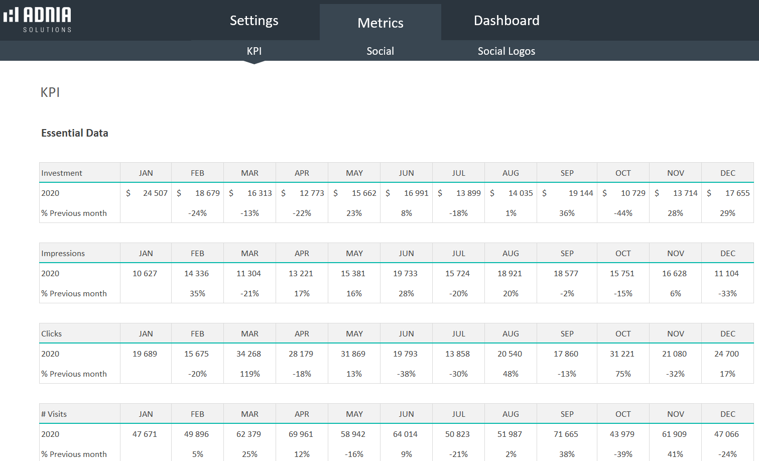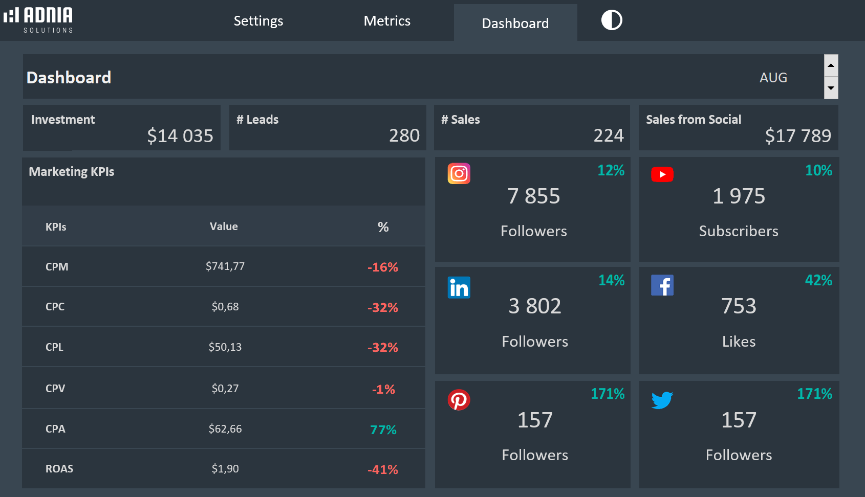- Flexible dashboard design helps you organize your social media marketing investment and activity