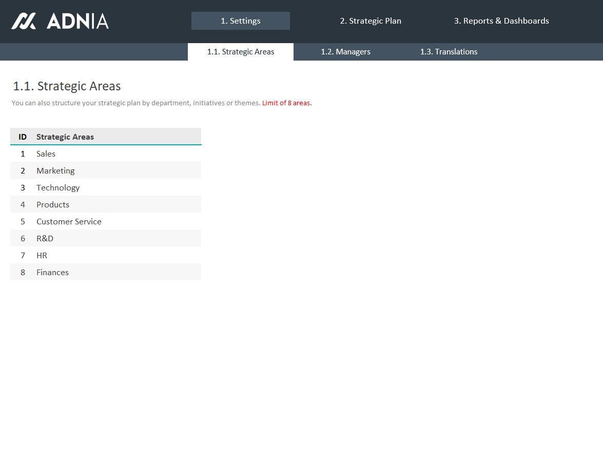 - Organize the strategic areas and stakeholders of your organization