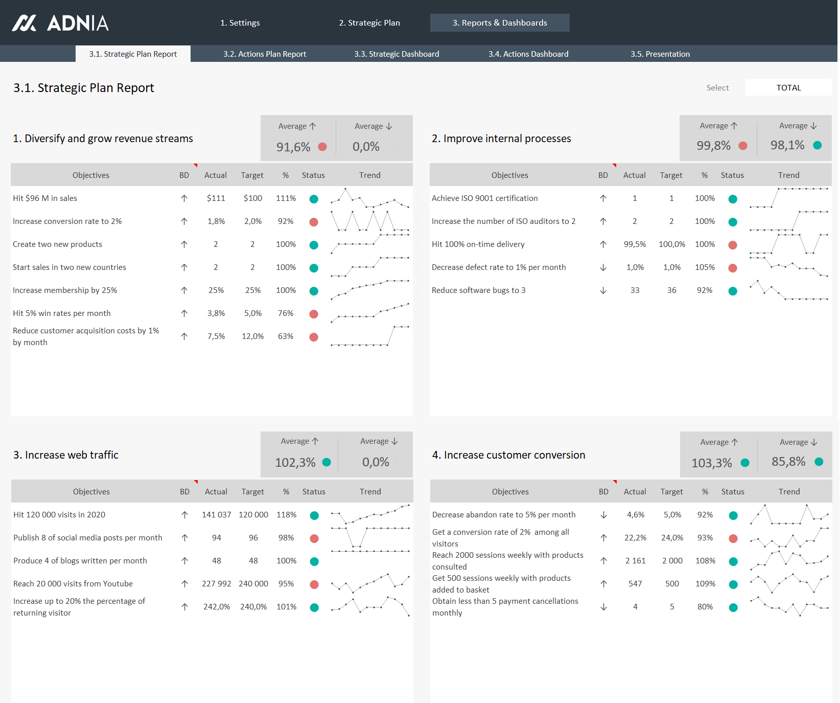 - Follow accurately your achievements and the trends of your business