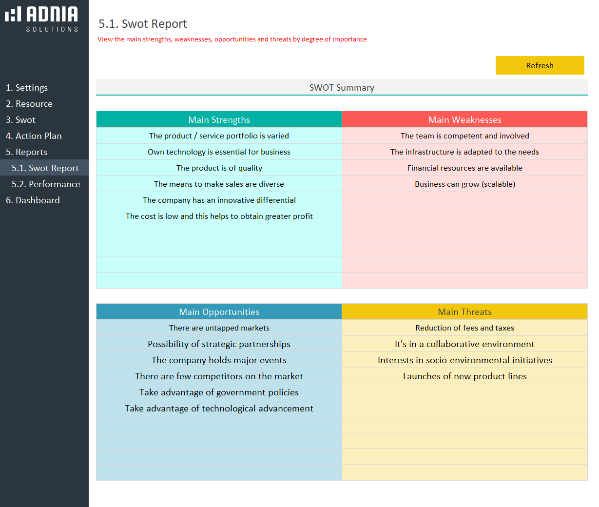 - Visually impactful dashboard layouts to clarify your S, W, O and T’s (strengths, weaknesses, opportunities and threats)