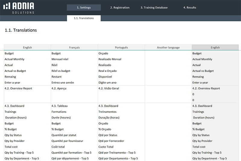 - Multilingual template: Select one of the available languages (English, French, Portuguese and Spanish) or manually translate to the language of your choice